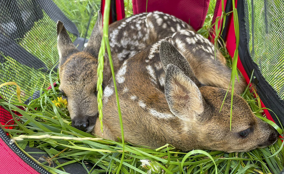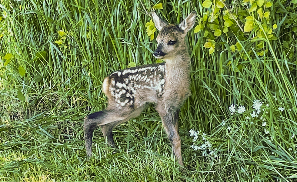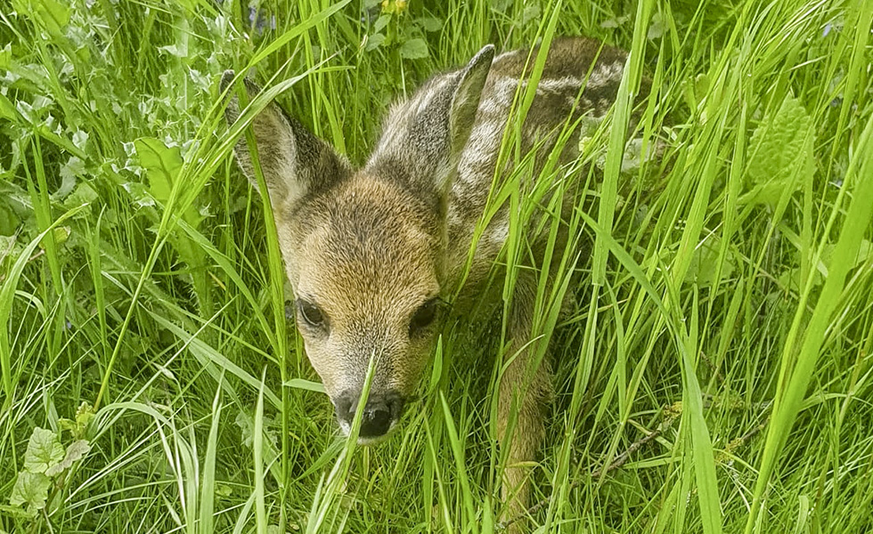 Rehkitze wechseln ca. alle 4 Stunden ihren Liegeplatz. Deshalb ist es wichtig, die Wiesen umgehend und direkt nach dem Absuchen zu mähen. Außerdem ist es wichtig, die Kitze möglichst schnell nach der Mahd wieder in die Freiheit zu entlassen.